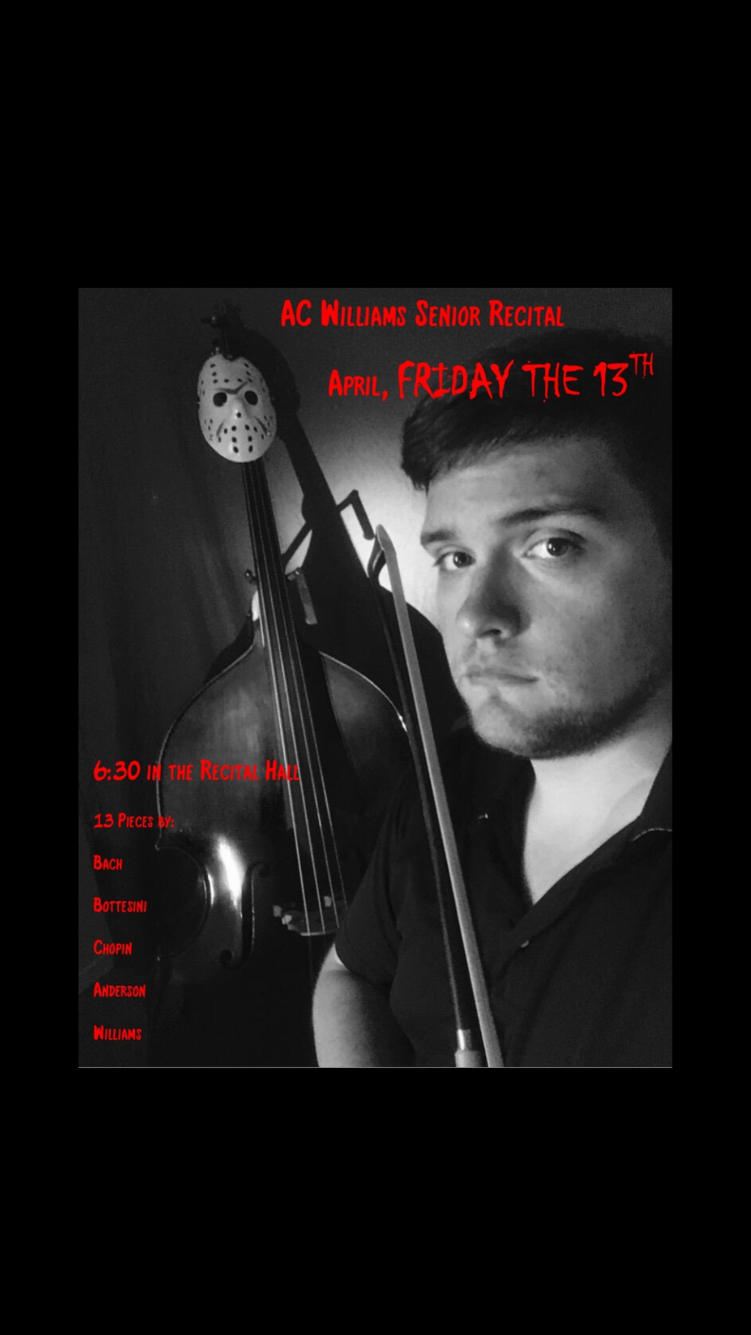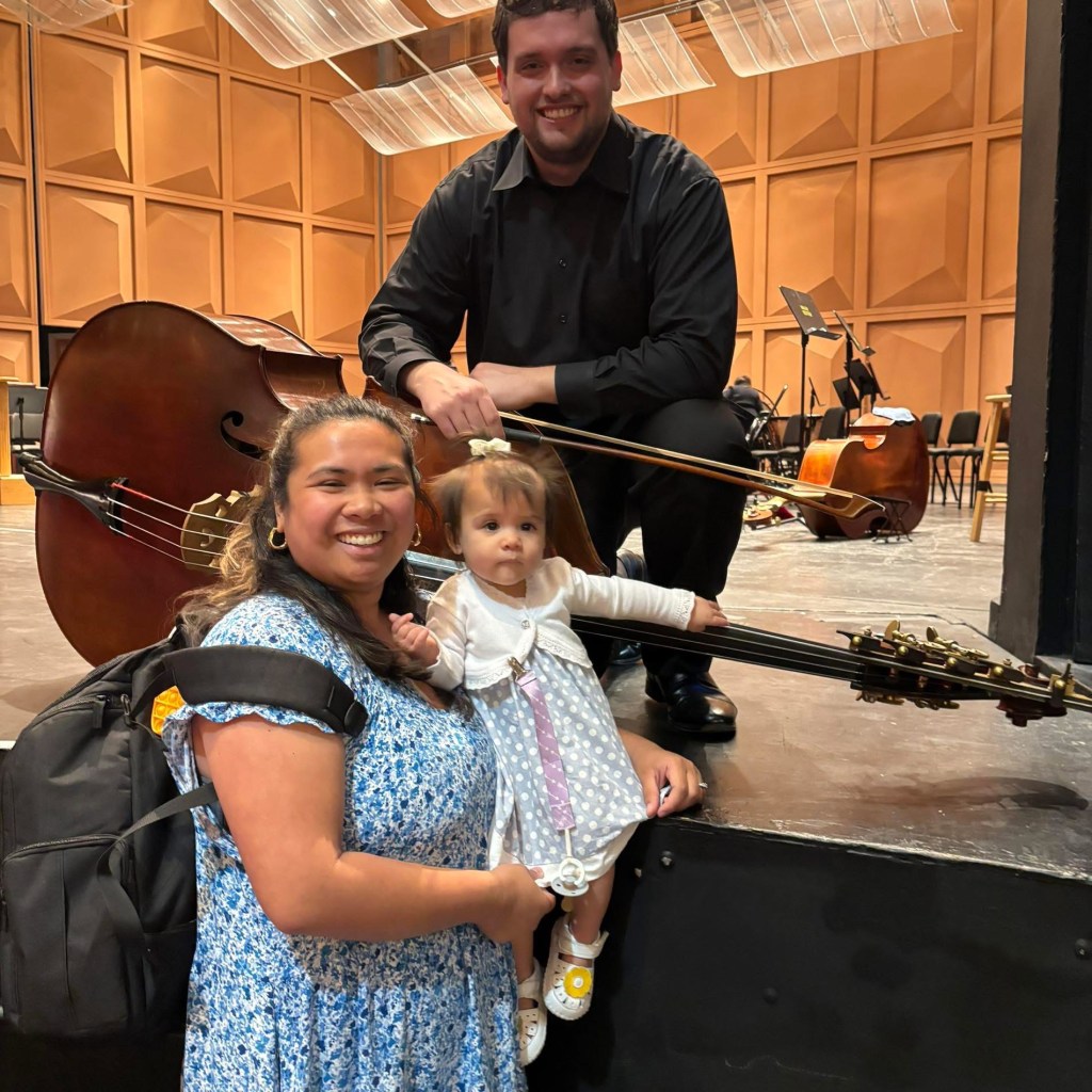 Cody’s proudest achievement is the family he has built with his wife Regem, and baby Alivia. In his free time, he enjoys their membership at Riverbanks Zoo, walks at local parks and ponds, and participating in swim lessons. He commissioned his bass from Rumano Solano in 2017. It is modeled after Giovanni Battista Rogeri’s 1690s Italian double basses, some of the earliest ever created.